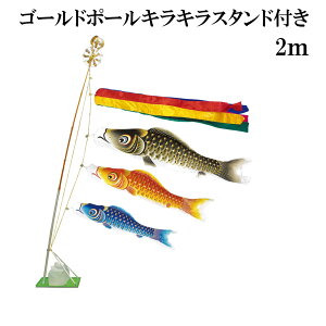 【金彩ロマン】【2m】【スタンドタイプ 水袋 】村上鯉のぼり スタンド鯉のぼりセット ゴールドポールキラキラスタンド付き 五色吹流し◎吹流しは五色吹流しになります。◎この鯉のぼりは撥水加工生地を使用しています...