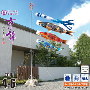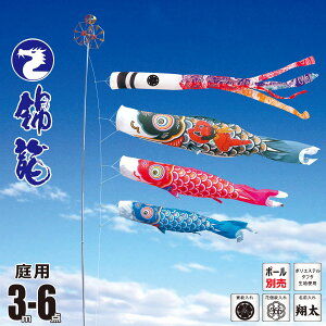 ■商品名:ちりめん京錦 3m 6点 庭園用 ガーデンセット ■主な設置場所:庭 地面に杭を打ち込み設置するタイプです。 ※杭やポールなどもセットになっております。 ■内容物 吹流し、鯉3匹、矢車
