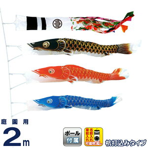 メーカー希望小売価格はメーカーカタログに基づいて掲載していますセット内容:吹流2m 黒鯉2m 赤鯉1.5m 青鯉1.2m ポール3.9m4本継 ゴールド矢車 ロープ10m節句人形優良店翔輝 ナイロン 杭打込フルセット 家紋・名前入れ可...
