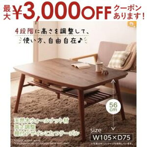 ▼こたつテーブル【75×105cm】 サイズ 約幅105×奥行75×高さ37.5/42.5/56/61cm [電源コード長さ]約3m 素材 天然木ウォールナット突板、MDF、ラバーウッド、ウレタン塗装...