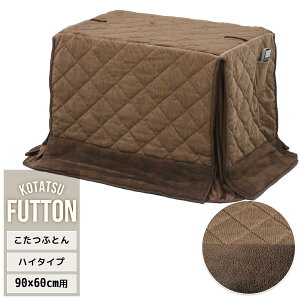 ハイコタツ専用の掛布団です。表面の生地はブラウン色で、ダイヤ柄のステッチがアクセントになっておしゃれです。明るめのブラウン生地と、足元は濃いブラウンのツートンカラーになっています。