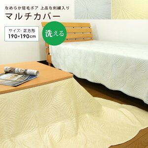 洗える ソフト短毛ボア キルトマルチカバーの紹介 肌さわり抜群、やわらかボアのマルチカバー/正方形。 やわらかさとなめらかさを同時に感じられる気持ちいい肌さわり、細かい模様のキルティングと贅沢な刺繍を施した贅沢な一品...