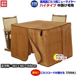 国産品の90×90cm幅用 高脚こたつ用掛布団。■素 材 表生地:ポリエステル100% 裏生地:ポリエステル100% (裏生地総ボア仕上げ)。■適用サイズ 90×90cm幅ダイニングこたつ。