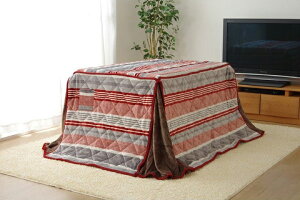 ハイタイプこたつ布団/ダイニングコタツふとん 正方形90×90巾用 薄掛け布団 ニードル(レッド色) ハイタイプ カジュアルストライプ柄、ジャガード薄掛けこたつ布団です。肌触りの良いフランネル生地で暖かく...