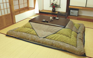 和柄のこたつ布団です。熱が逃げにくいフィットキルト加工を施しています。生地には綾織りの肉厚生地を使用しています。