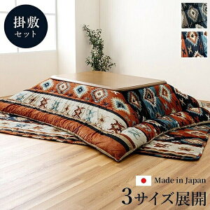 ■商品紹介華やかなデザインのキリム柄のこたつ布団と敷のセットです。表地には肌触りの良い短毛マイクロファイバーを使用し、ふかふかの触り心地です。こたつ布団の裏地はフランネル生地で暖かいです。こたつ布団は国内で綿入れ加工