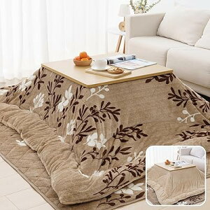 こたつ布団 正方形 掛け敷きセット 約190x190cm リバーシブル こたつ掛け布団 敷き布団 2点セット 両面使える 厚掛け 厚手 あったか フランネル ふわふわ 冬用 洗える 静電気防止 毛抜けない (木の葉・ベージュ)ブランド...