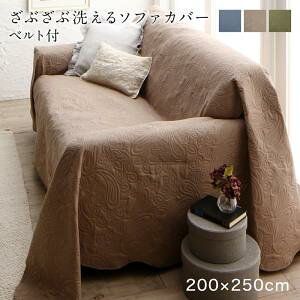 かけるだけでソファが変わるデザインソファカバー ズレ防止ベルト2個付き 200×250cm