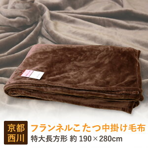 京都西川[フランネル]こたつ中掛け毛布【2NY1444】約190×280cm【特大長方形】無地/ブラウン/毛布にも!/あったかコタツ毛布/もうふ/炬燵/atfive。
