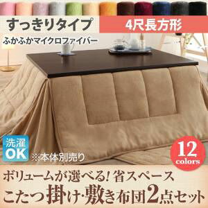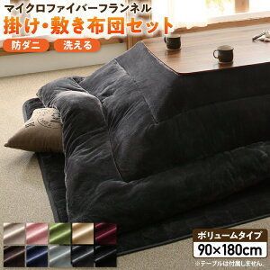 ボリュームが選べるマイクロファイバーフランネル防ダニこたつ掛け・敷き布団2点セットボリュームタイプ6尺長方形(90×180cm)天板対応