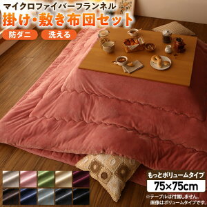 ボリュームが選べるマイクロファイバーフランネル防ダニこたつ掛け・敷き布団2点セットもっとボリュームタイプ正方形(75×75cm)天板対応。