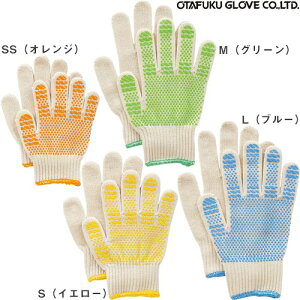 |商品名|こどもてぶくろ スベリ止め付 10双|メーカー|おたふく手袋|品番|G-638|サイズ|SS(オレンジ)、S(イエロー)、M(グリーン)、L(ブルー)|素材|本体:綿100%(10/1 2本+16/1...