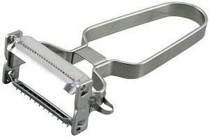 野菜の千切りにぴったりなのが、この千切りピーラー。ステンレススチールの刃で、にんじんやじゃがいも等の千切りをすることができる。 仕上がりはやや太めの千切りなので、食感を残したいサラダやきんぴらごぼうなどにもちょうどいい