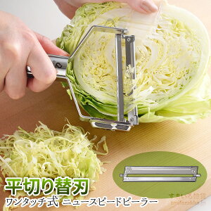 刃を斜めに設定してあるので、抵抗が少なくスムーズに切ることが出来ます。 平切りで皮むき&スライスでキャベツの千切りも簡単。 シャ