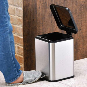 スタイリッシュなデザインのゴミ箱です。両手がふさがっていても脚だけでラクに開閉できます。キッチンや掃除、ペット用ゴミ箱としても大活躍。ふた付きなので中が見えず、においも漏れません。
