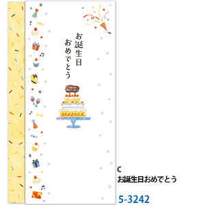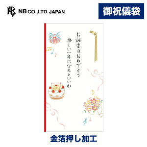 かわいらしいイラストの描かれた御誕生日祝いの御祝儀袋です。 表書きにメッセージが入っているのでより心のこもった誕生日御祝をお贈りいただけます。 のしには金箔押しを使用し、華やかさをプラスしました。 縦175×横95mm 金箔押し加工