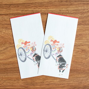 。 金箔押し加工がキラキラと輝きます。 犬、うさぎ、鳥など動物たちのマーチングが描かれたお祝いにおすすめのデザインです。 縦110×横70mm 2枚入 金箔押し加工 お札三つ折りサイズ類似商品は