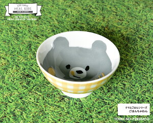 クマとごはん -KIDSシリーズ- 「お気に入りのうつわで、 ごはんを楽しく食べよう!」 癒されるかわいいクマを描いた食器シリーズ 。 小さなお子様でもお使い頂けるよう設計した、 小さめのサイズです。 お気に入りの自分専用の食器が