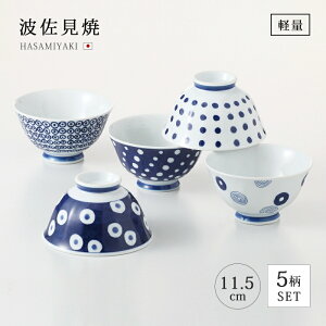 仕様 <セット内容> 飯碗×5 <サイズ> (約)Φ11.5×H6cm <材質> 磁器 <容量> (約)300ml <熱源> 食洗機:OK 電子レンジ:OK オーブン:不可 直火:不可 <生産地> 日本製(染付:美濃焼/上絵:波佐見焼...
