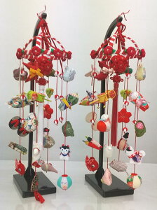 雛人形 つるし雛 [雪ん子うさぎ ミニ] 内容 ちりめん吊るし飾り 木製黒塗りスタンド付 サイズ 高さ41cm(飾り時) ⇒吊り飾りとは、、、 この年に生まれた女の子が幸多かれと願い 一針一針縫いあげた縫いぐるみの飾り物。 別名で桃飾りとも