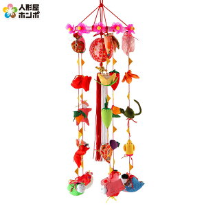 縁起物をちりばめた吊り飾りです お雛人形やなまえ旗のお隣にいかがですか? 桃の節句の進物やプレゼントに大変喜ばれます おひとつおひとつ手作りの為、とび糸などがある場合がございます ご理解のほどよろしくお願いいたします 【サ
