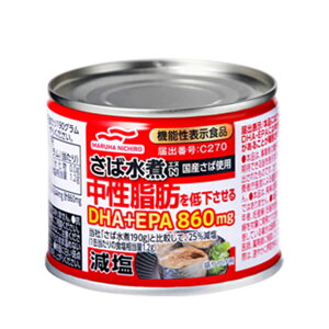 中性脂肪が気になる方にお勧めです。中性脂肪を低下させる機能がある魚由来の栄養素、DHA(ドコサヘキサエン酸)とEPA(エイコサペンタエン酸)を含有。同社「さば水煮190g」と比較して25%減塩しました。商品名マルハニチロ...