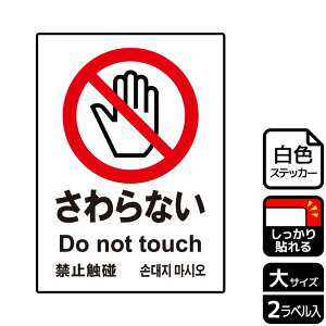 標識スクエア 「 さわらない 」 ヨコ・大【ステッカー シール】 400x138o CFK2008 2枚組