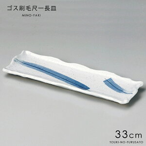 青色の刷毛がポイント。 お料理を引き立てる爽やかな長皿です 長径 33cm 短径 10.8cm 高さ 2cm 重量 516g 材質 磁器 電子レンジ OK 食器洗い機 OK 日本製 当店のサンマ皿 全品は こちら