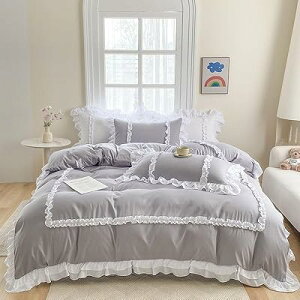布団カバーセット 掛けふとんカバー 寝具カバー ふとんカバー シングル セミダブル 敷布団カバー 掛け布団カバー ベッドスカート 可愛い フリル付き 肌に優しい おしゃれ 姫風 可愛い 北欧 新生活 引っ越し 清潔 丸洗いOK (グレ...