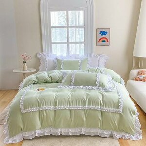 布団カバーセット 掛けふとんカバー 寝具カバー ふとんカバー シングル セミダブル 敷布団カバー 掛け布団カバー ベッドスカート 可愛い フリル付き 肌に優しい おしゃれ 姫風 可愛い 北欧 新生活 引っ越し 清潔 丸洗いOK (グリ...