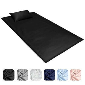 敷き布団カバー シングル 綿100% サテン織り 300本高密度生地 ワンタッチシーツ 極厚敷き布団用 敷布団カバー 敷きふとんカバー 選べる9色 洗える 防ダニ 抗菌 防臭 ホテル品質 滑らか 柔らかい 105×215cm 黒 ブラ...