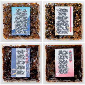 釜炊き佃煮・塩昆布詰合せ4袋入明治35年より伝えられてきた調味料を佃煮に全て染み込ますことによりふっくらとしっかりした味に炊き上げる事ができる「直火釜炊き製法」にて製造した佃煮の詰合せ商品です。全国水産加工たべもの展にお