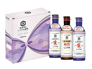 いつでも新鮮ギフトセット空気を通さない密封容器に詰めたしょうゆを中心としたギフトです。メーカー型番 : KIS-15Nセット内容 : いつでも新鮮 しぼりたて生しょうゆ・旨み豊かな昆布しょうゆ・塩分ひかえめ丸大豆生しょうゆ...