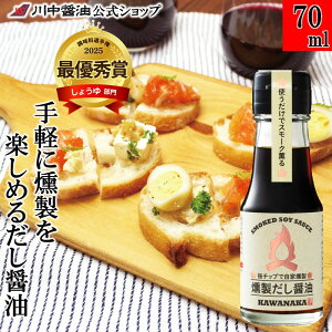 商品名 燻製だし醤油 70ml 3本セットはこちら 12本セットはこちら 商品概要 原材料 しょうゆ(脱脂加工大豆、小麦、食塩)(国内製造)、米醸造調味料、食塩、ぶどう糖、清酒、砂糖、昆布エキス、鰹節...