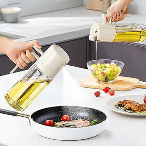 オイルスプレー オイルボトル 2in1オリーブオイル 霧吹き 耐熱ガラス油ポット 極細のミスト 垂れない 片手でも使用可能 油 醤油差し 透明 防塵 ミスト 調味料入れ(ベージュ, 550ml)ブランド色ベージュモデルOILS101商...