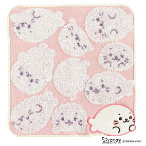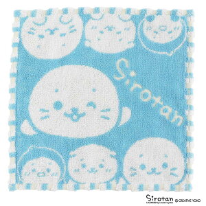約25×25cm綿 100%中国製縞々の縁取りから、しろたん・らっこいぬ・らむねが仲良くひょっこり顔を出した愛らしいデザインです。中央で挨拶をしている手を上げたしろたんに癒されます。 ※有料のギフトBOXをご利用の場合はこちらよりご注