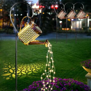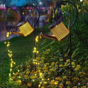 【ガーデンライト】ユニークな装飾ガーデンライト:じょうろが輝く星の流れを注いでいるかのように、暖かい白色LEDが繊細な銅線に張られ、暗い庭にユニークな焦点を作成します。微風が吹いていて、魔法のような美しい視覚効果がロマン