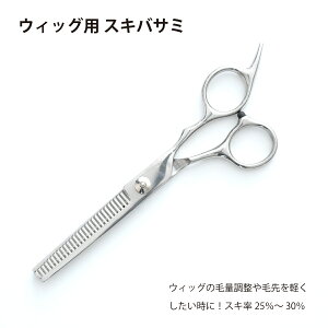 ウィッグ用のスキバサミです。 前髪調整や、毛量調整、毛先を軽くしたいときに! スキ率:25%〜30%で梳き過ぎる事なく、初心者の方にもご利用しやすい仕様です。 ステンレス製で滑りやすいファイバーもカットしやすく、切れ味も抜群で