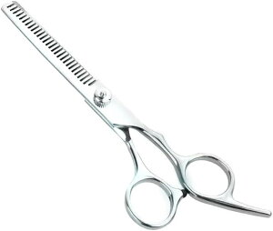 スキバサミ・シルバー ・・tyle:スキバサミ・切れ味抜群、耐久高硬度ステンレス素材なので、高級感あり錆びにくい仕様なので長くお使いいただきます。通常のステンレストリミングハサミに比べ錆びにくさが格段に違います。・対称ハンド
