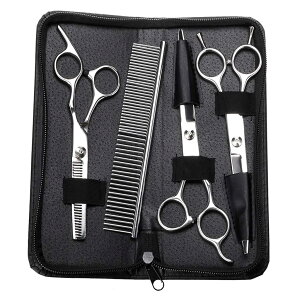 【用途】愛犬愛猫のトリミングに、ペット用シザー・セニングシザーの6点セットです。 【高耐用性】高品質ステンレス製で錆びにくくて、ハサミの良い切れ味を長くて保つので、耐久性があり、長期にご使用することができます。 【楽にご