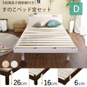 2/57/62cm カントリー調デザインと天然木の素朴さがゆとりのある暮らしを演出してくれる『すのこベッド』。ベッド下は最大高さ51cmの脚長・大容量タイプ! 高さは3段階調整できるので、ライフスタイルに合わせてお使い頂けます...