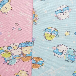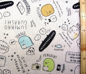 しろくま、ぺんぎん?、とかげ、ねこ。おなじみのすみっコたちとみにっコたちがムギュムギュ状態!(笑) 厚すぎず、薄すぎない、吸湿性にすぐれた綿100%のオックスプリント。ハリのない程よいやわらかさがありスクールグッズ作りに人気があります...