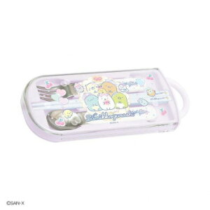 すみっコたちとランチタイムを楽しもう。ランチタイムの必需品!スプーン&フォーク&はしのトリオセットです。指で引き出すスライド式で、取り出しやすい。パーツが少なくて洗いやすいのがポイント。抗菌加工で使いやすい!ちょっとおめか