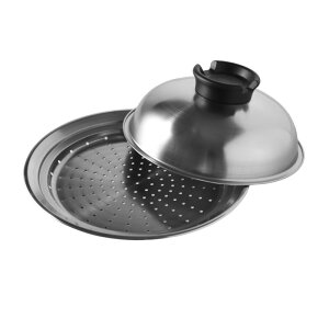 ・お手持ちのフライパンや鍋にのせるだけで蒸し料理ができるステンレス製のスチーマー。 ・下からの蒸気がまんべんなく食材に当たります。ドーム型の蓋は加熱蒸気を対流させ食材の加熱ムラがなくふっくらしっとり調理します。 ・使い