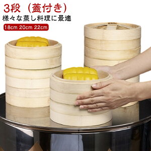3段(蓋付き) 18cm 20cm 22cm【様々な蒸し料理に最適】肉まんやシュウマイなどの中華料理や蒸し野菜などの様々な料理に使える竹セイロの蓋1個と本体2個のセットです。野菜・お肉・お魚等。蒸すと...