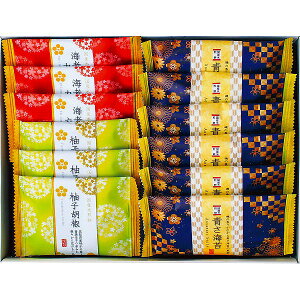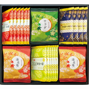 国産米100%にこだわった煎餅の詰合せです。【パッケージサイズ】320×65×293mm【内容】のり巻あられ・柚子胡椒煎餅・海老カレー煎餅×各6、青さ海苔煎餅×4、海老塩煎餅・サラダ煎餅×各3【アレルゲン】乳・えび【生産国】日本【パッケージ
