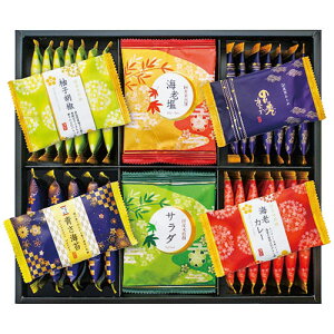 おいしさいろいろ せんべい詰合せ国産米100%にこだわりました。国産の黒豆入りおかき、香り高い焼きのりを巻いたのり巻きあられ、磯の香りひろがる青さ煎餅、柚子が香るスパイシーな柚子胡椒煎餅などの詰合せです...