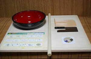 《セット内容》 桐めん台90×80×厚さ約2センチ ほお麺棒90センチ 駒板M 左利きステンレスめん切り包丁24cm フェノールこね鉢54cm そば打ち説明書 実演DVD