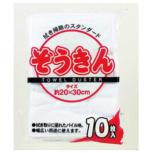 【特徴】1枚あたり54円でとってもお買い得! たくさん使えて便利な綿100%ぞうきん10枚セットです。 【サイズ】20x30cm。1枚あたり重量:約 32g 【材質】綿 100%。ベトナム製