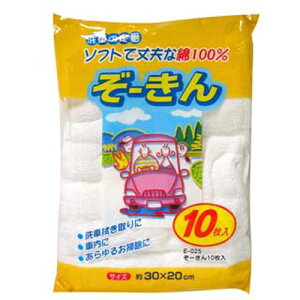 E-025 内容量 10枚 特 徴 ◆お買い得度満点のEDLPぞーきん10枚入 ◆ソフトで丈夫な綿ぞうきん。 ◆吸水性に優れ、汚れや水を